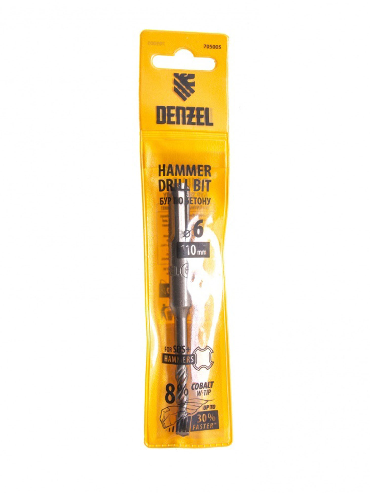 Бур по бетону, двойная спираль, Cobalt W-tip, 6x110 мм, SDS PLUS, DENZEL 705005