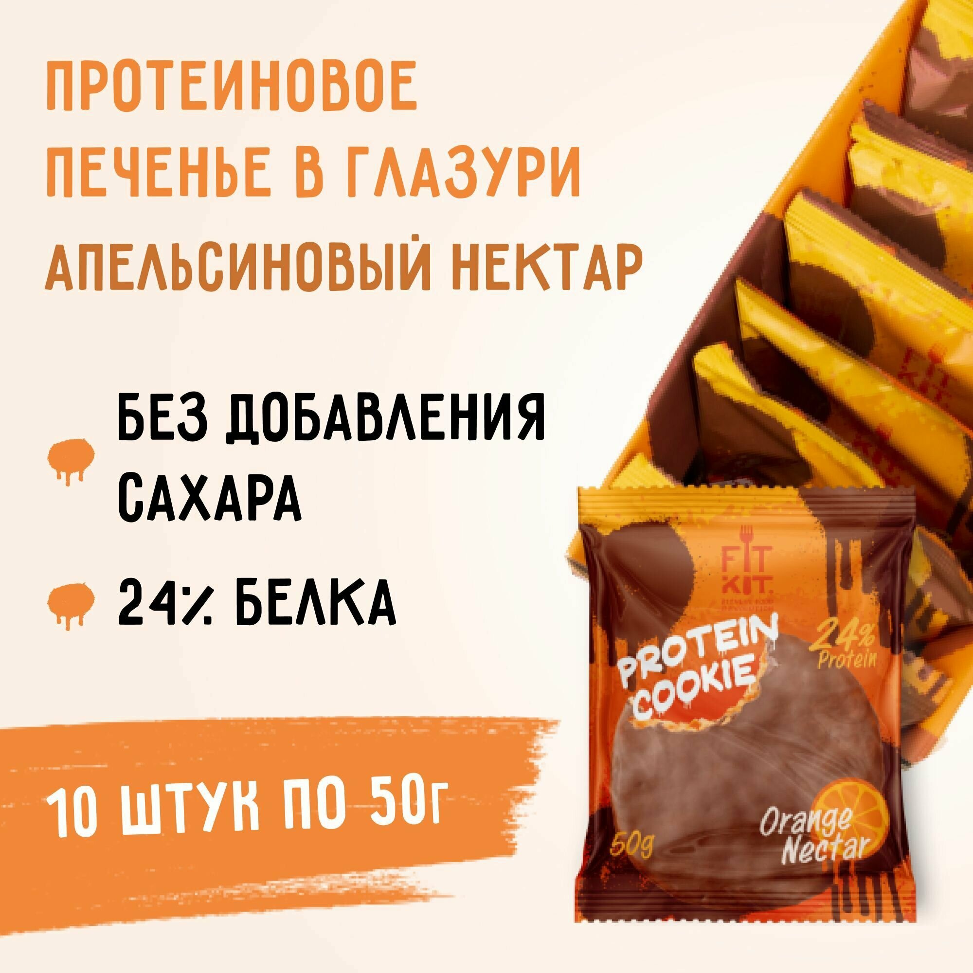 Fit Kit, Chocolate Protein Cookie, 10шт x 50г (Апельсиновый нектар)