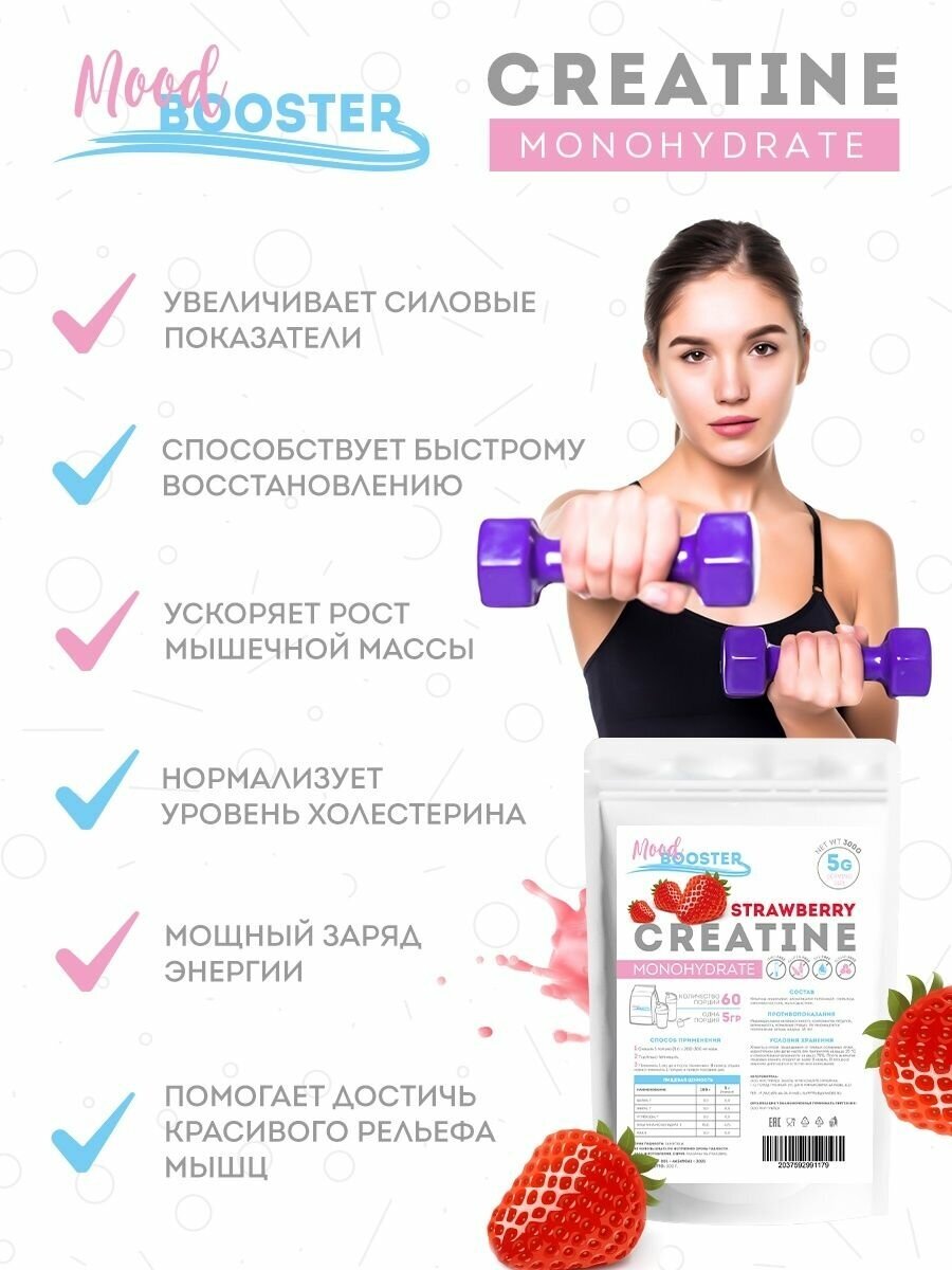 MoodBooster Креатин моногидрат 300г со вкусом клубника интересное: