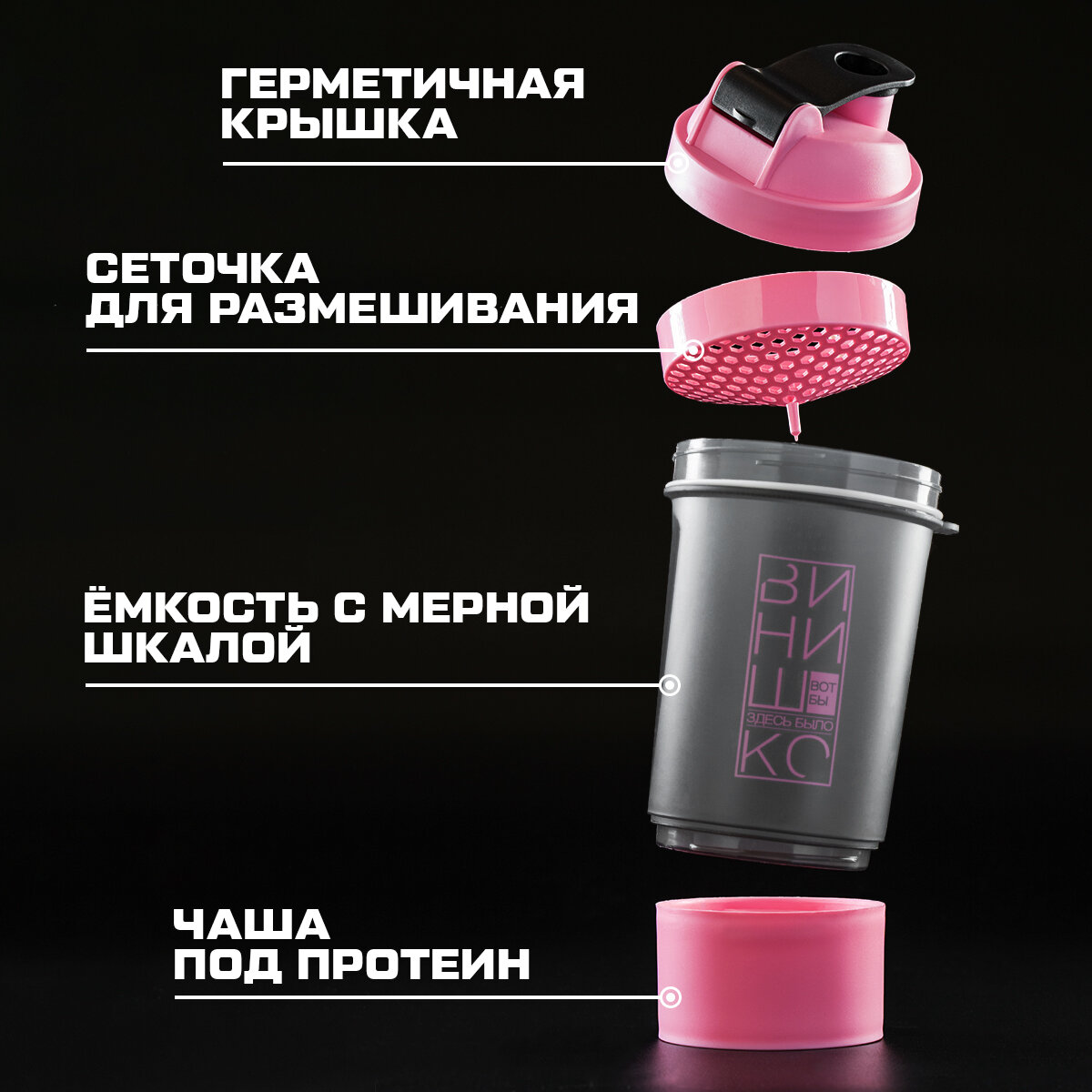 Шейкер спортивный «Вот бы здесь было винишко», чёрно-розовый, с чашей под протеин, 500 мл интересное: