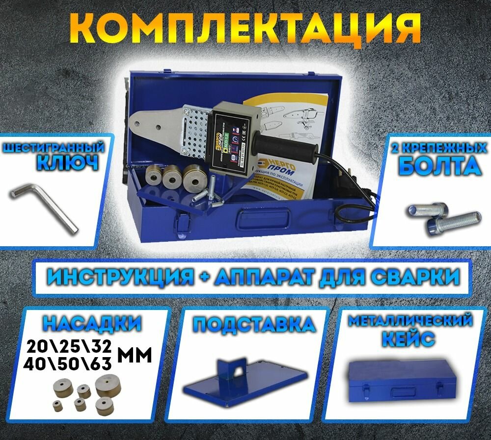 Аппарат для сварки пластиковых ПВХ полипропиленовых труб AQUAPROM АСП-1,5/6 М, 1500 Вт, 6 насадок