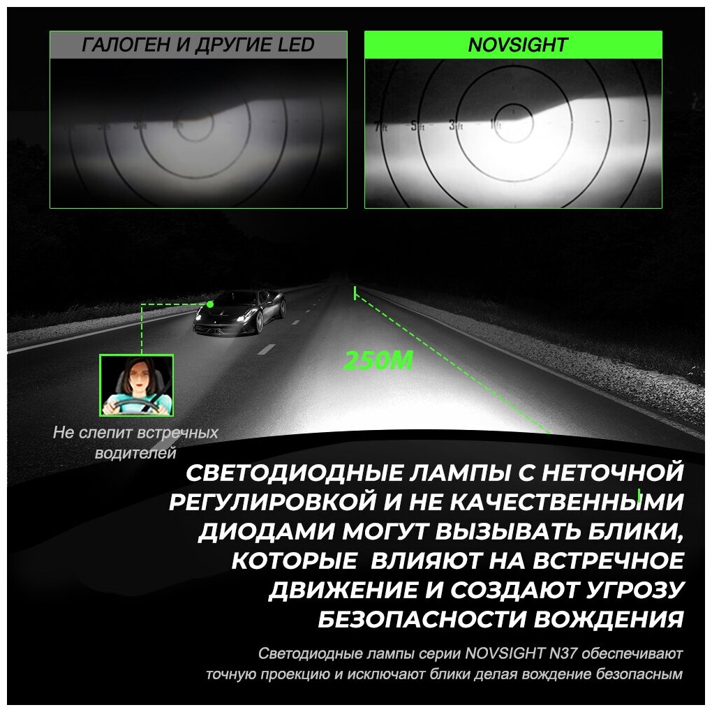 Светодиодная автомобильная LED лампа Novsight N37 H7 цоколь PX26d 120Вт 2 шт 6500К белый свет 22000Лм интересное: