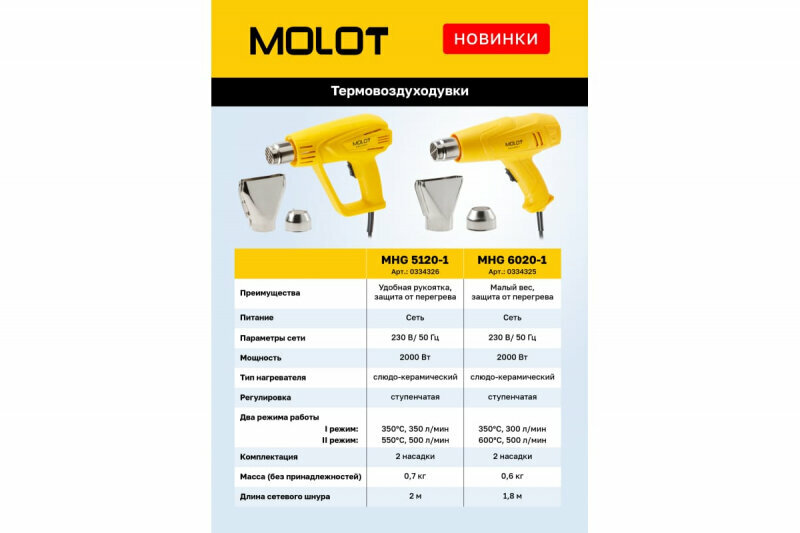 Ниже Вы можете прочитать отзывы на Фен строительный (термовоздуходувка) MOLOT MHG 5120-1 (0334326), ознакомится с подробными характеристиками, посмотреть интересные обзоры и фотографии на Фен строительный (термовоздуходувка) MOLOT MHG 5120-1 (0334326).
