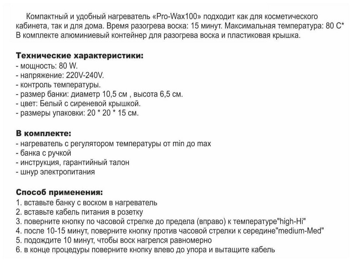 | Отзыв: | отличный воскоплав,есть всё что нужно для процедур.отличный для домашнего использования |