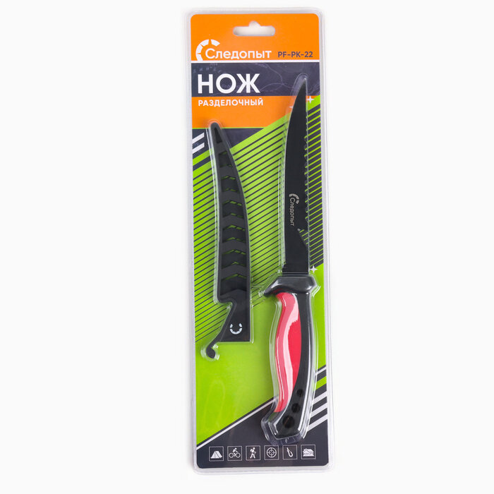 Нож разделочный Следопыт филейный, прорезиненная ручка, дл. клинка 150 мм, черный, в чехле интересное: