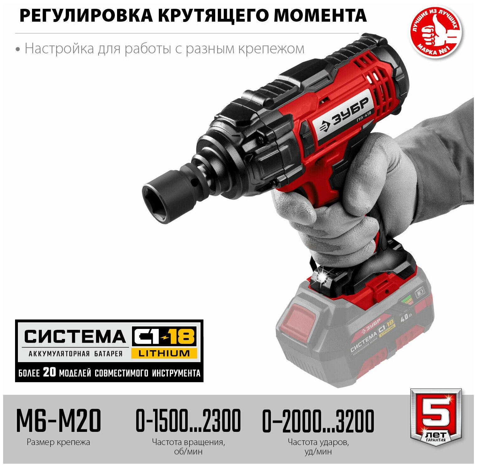 ЗУБР С1-18, 18 В, 400 Н·м, без АКБ, гайковерт ударный (ГУЛ-410)