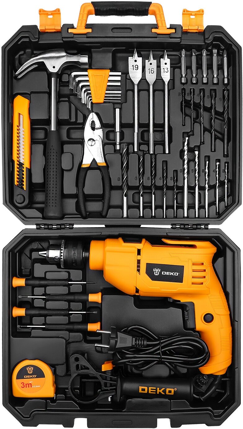 Купить Дрель ударная DEKO DKID600W, 600 Вт, в пластиковом кейсе, 40 предметов в наборе