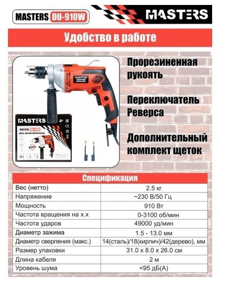 Дрель ударная электрическая Masters Du-910w . интересное:
