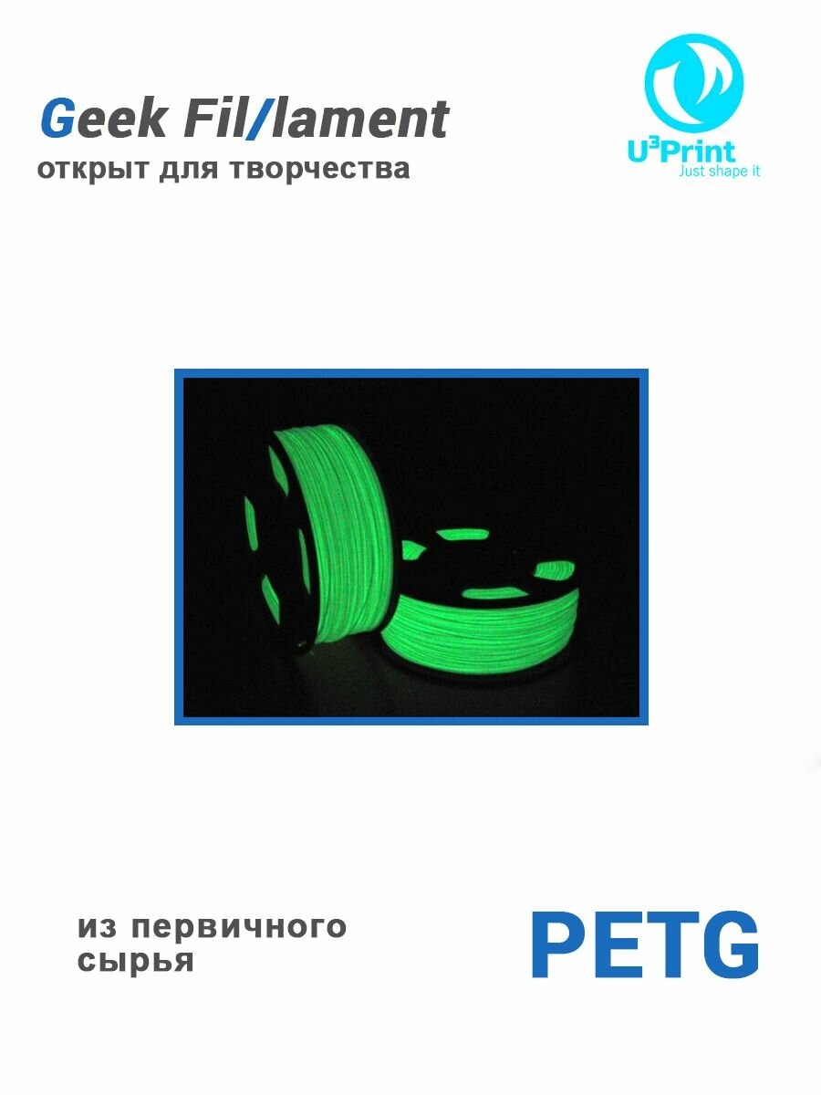 Пластик для 3D печати PETG Зеленый Фосфор флуоресцентный (светится в темноте), 1 кг Geek Fil/lament интересное: