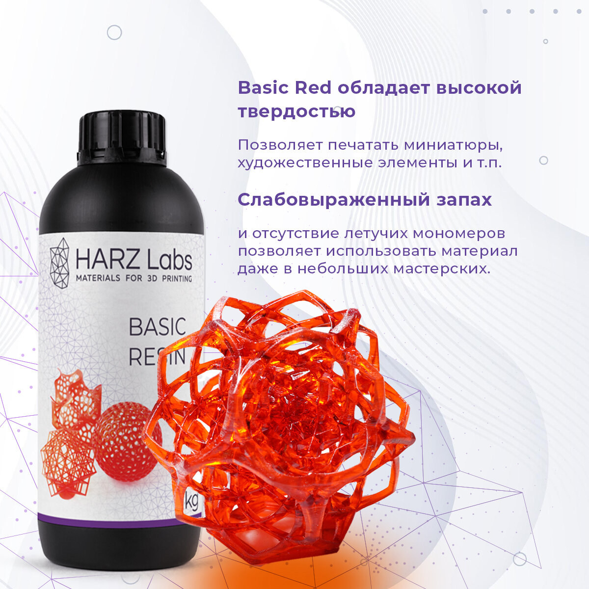 Фотополимер HARZ LABS Basic для 3D принтеров LCD/DLP 1 л Красный интересное: