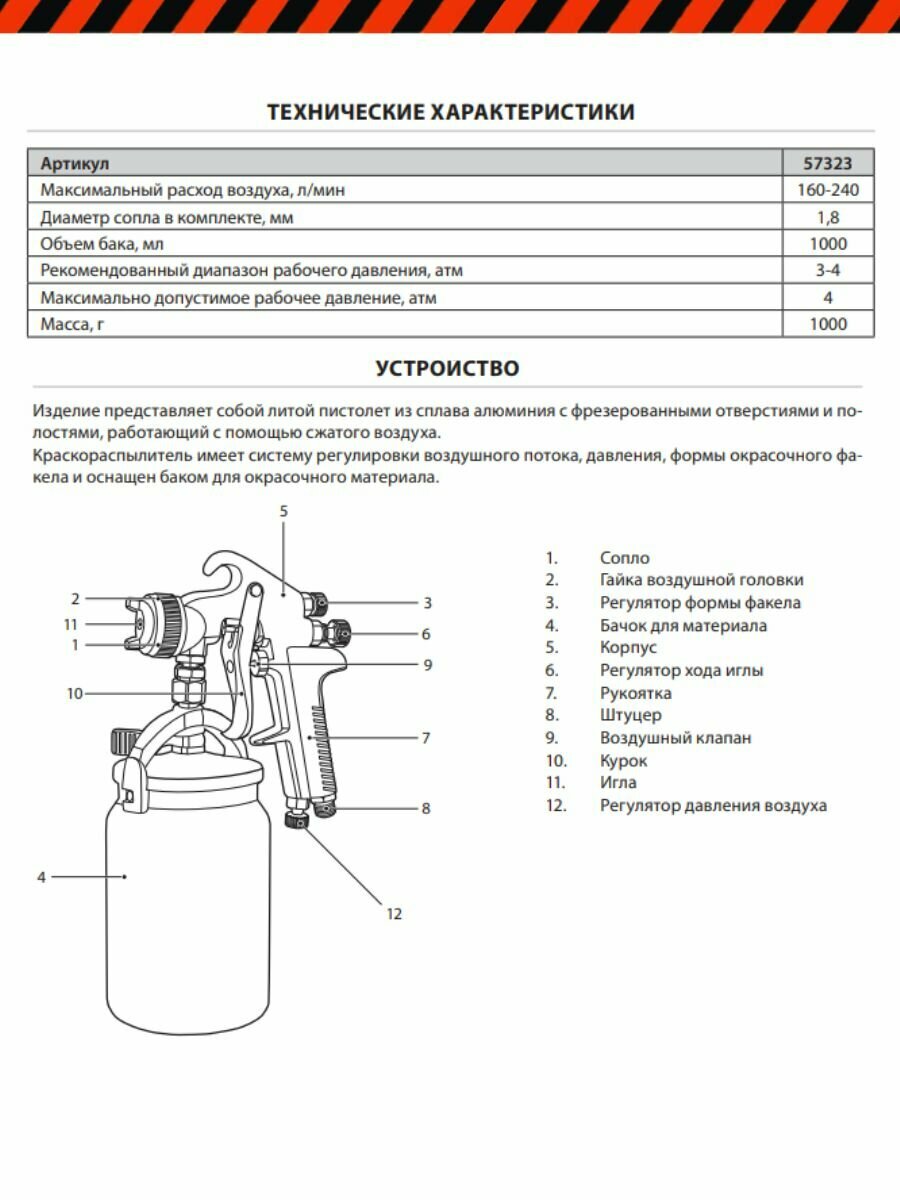 СохранитьКраскораспылитель HP пневмат. с нижним бачком V= 1 л, сопло диаметром 1.8 мм// Matrix интересное: