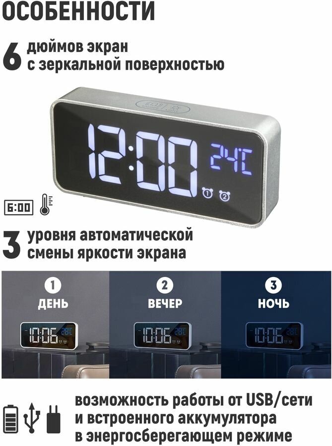 ARTSTYLE Часы электронные CL-S80WBL Часы электронные, серебристые, со встр. аккум., инд. - бел. син. интересное: