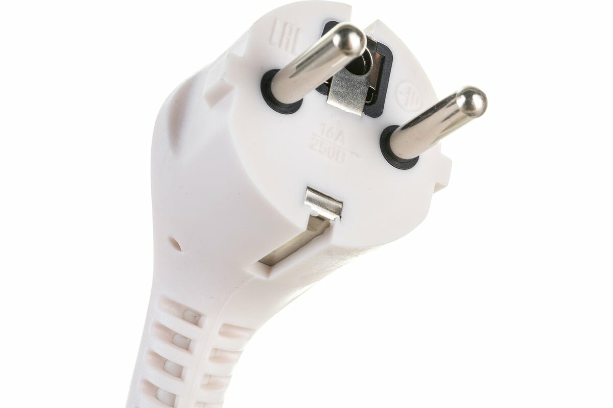 Шнур сетевой с вилкой ЭРА U-3x1,5-5m-W с заземлением 5м ПВС 3x1,5мм2 белый