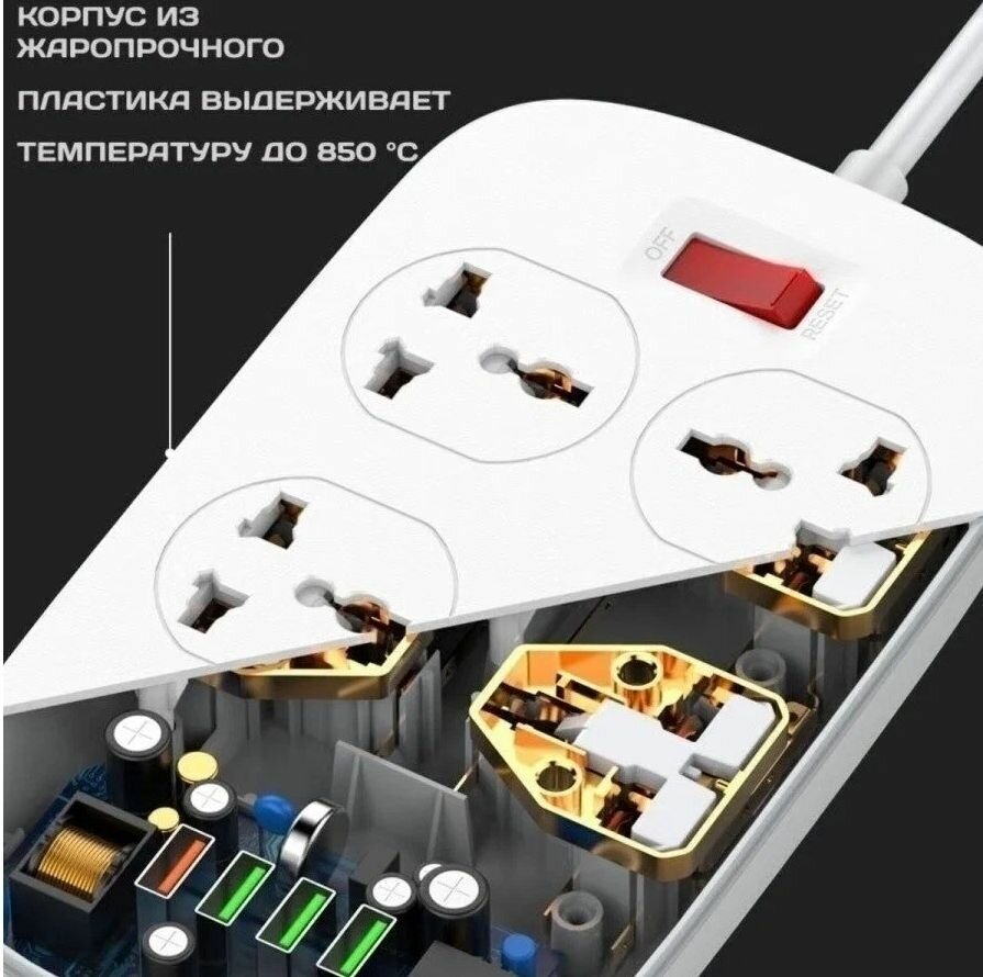 Многофункциональный сетевой фильтр LP4407Q 4 розетки + 4USB порта QC3.0, 2000mm