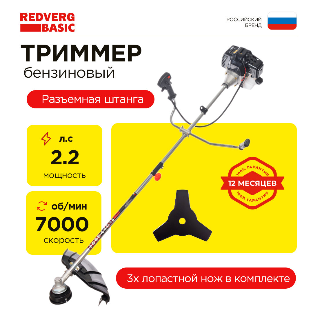 Триммер бензиновый RedVerg Basic GB43CS, 42,7 куб,м, 2,2 л/с, 1700Вт, 7000 об/мин, 8 кг