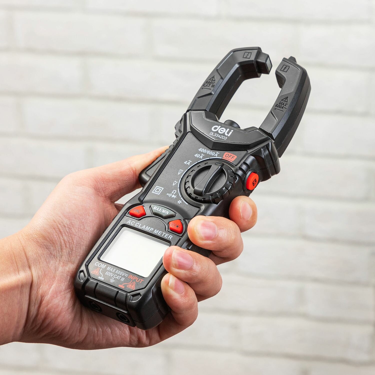 Токоизмерительные цифровые клещи DELI DL334203, раскрытие клещей 30 мм, CAT III 600В, 600А, 40 мОм 102980