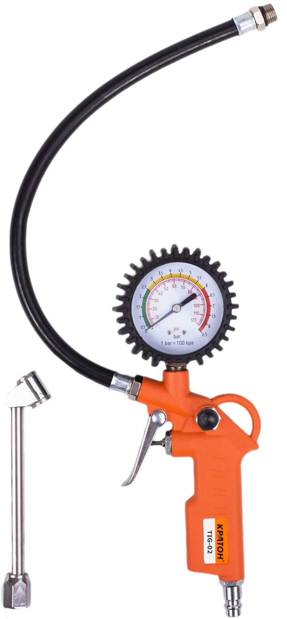 Пистолет для подкачки шин с манометром Кратон TIG-02, арт. 3 01 02 035