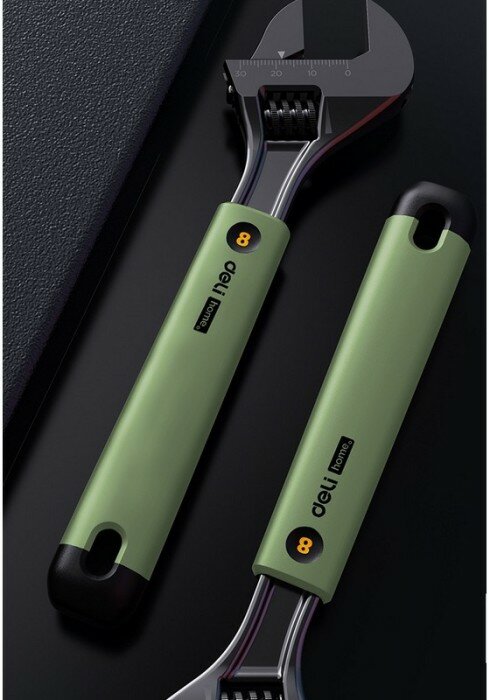 Купить Разводной ключ "Home Series Green" Deli HT1508L 200мм (Эксклюзивный дизайн,рукоять из софттач пластика, лазерная гравировка шкалы,подарочная упаковка)