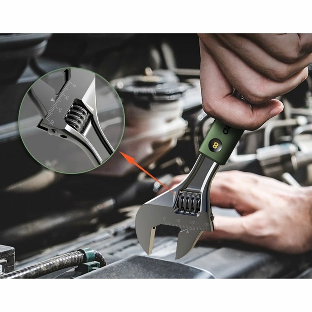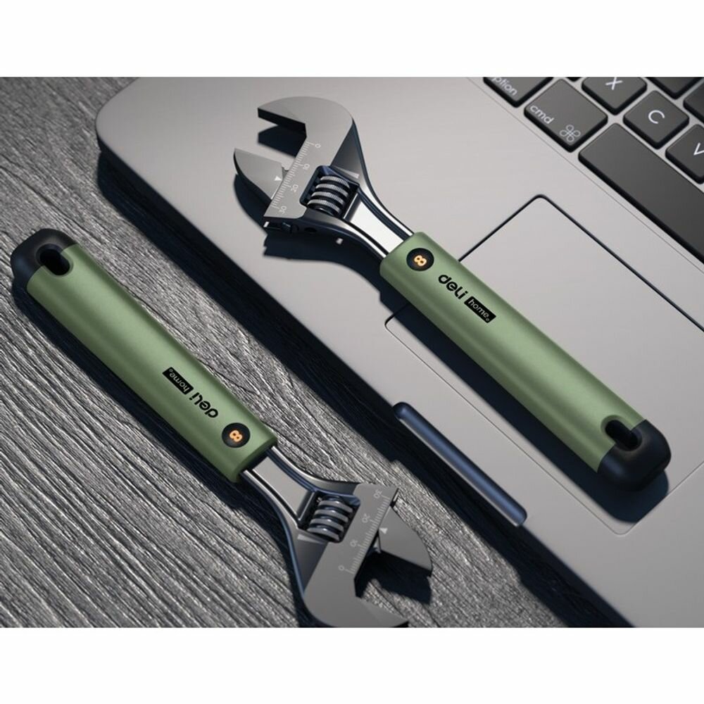 Разводной ключ DELI Home Series Green HT1508L 200 мм, Soft Touch рукоять, лазерная гравировка шкалы, эксклюзивный дизайн, подарочная упаковка 112880