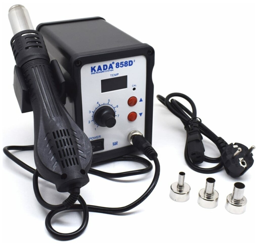 Паяльная станция-фен KADA 858D2 650 Вт, турбинный фен, с подставкой, 3 насадки для фена