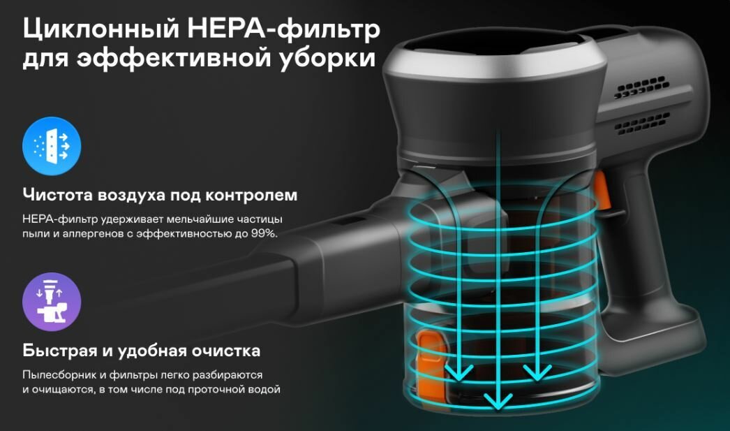 | Плюсы: | Теперь убирать мелкий мусор можно в моменте, все углы, которые пропускает робот-пылесос берет этот |