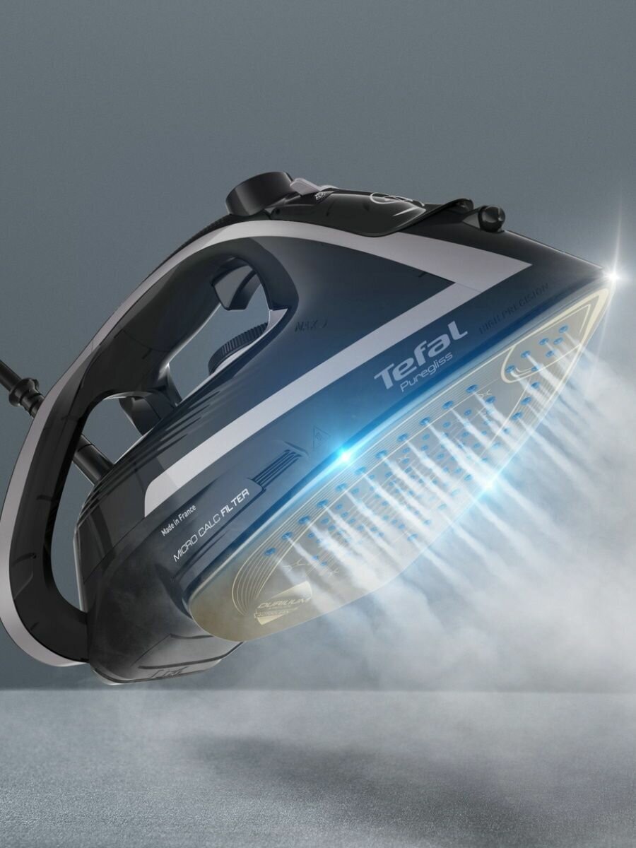 Паровой утюг Tefal Puregliss FV8062E0, с автоотключением, вертикальным отпариванием, защитой от накипи, 3000 Вт, Франция