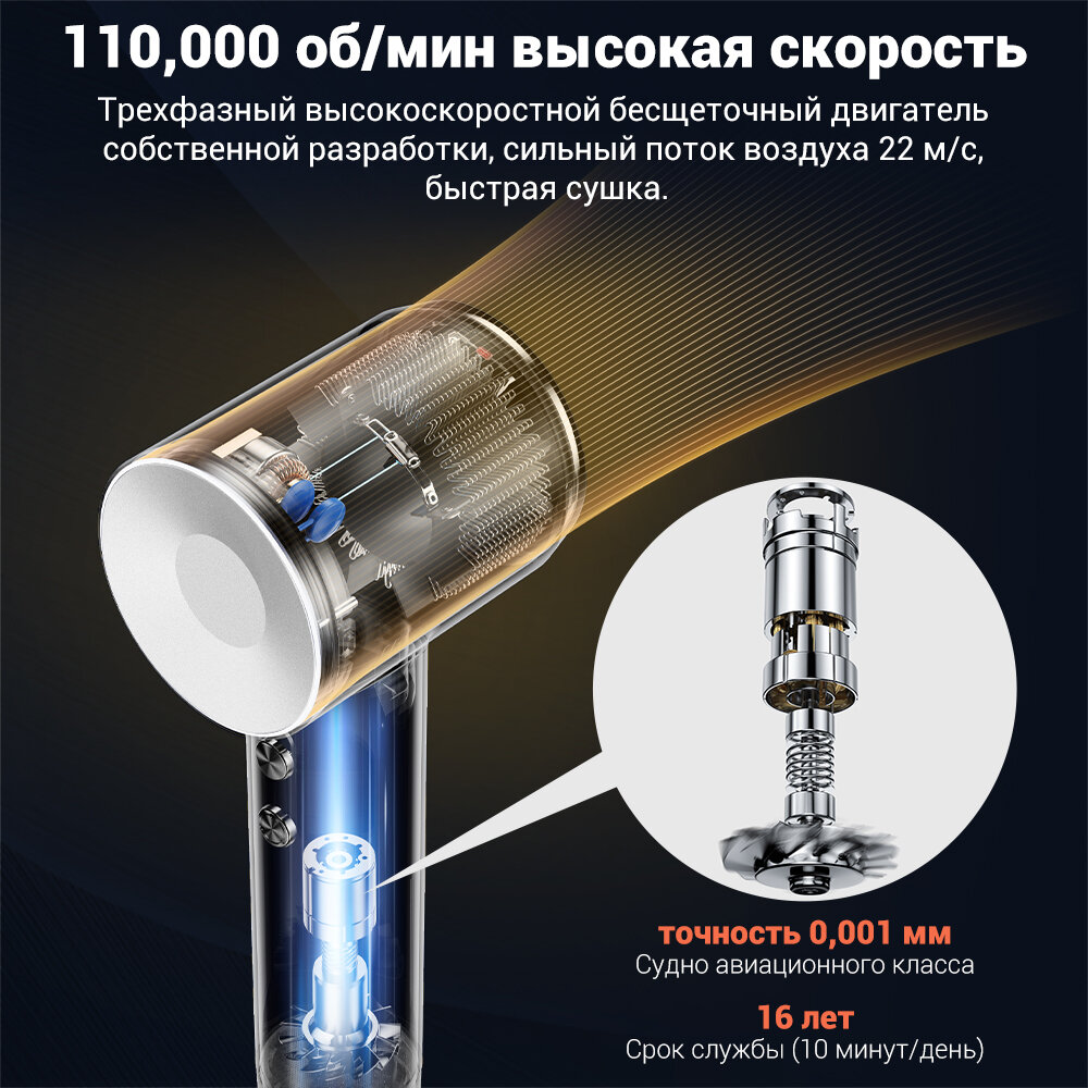 Фен для волос Laifen SWIFT технология шумоподавления, 59 дБ, черный, евровилка