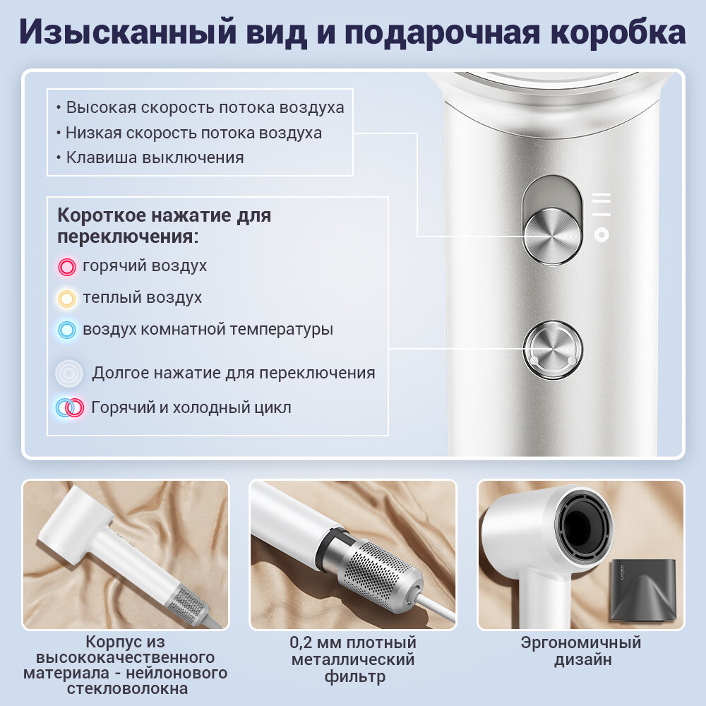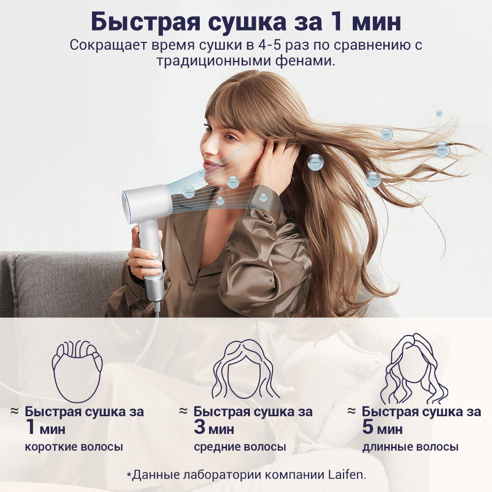 Фен для волос Laifen SWIFT с технология шумоподавления, 59 дБ, белый
