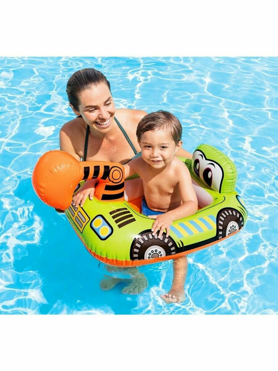 Круг надувной Intex Kiddie Floats, Экскаватор, для малышей, с отверстиями для ножек и спинкой, 1-2 года