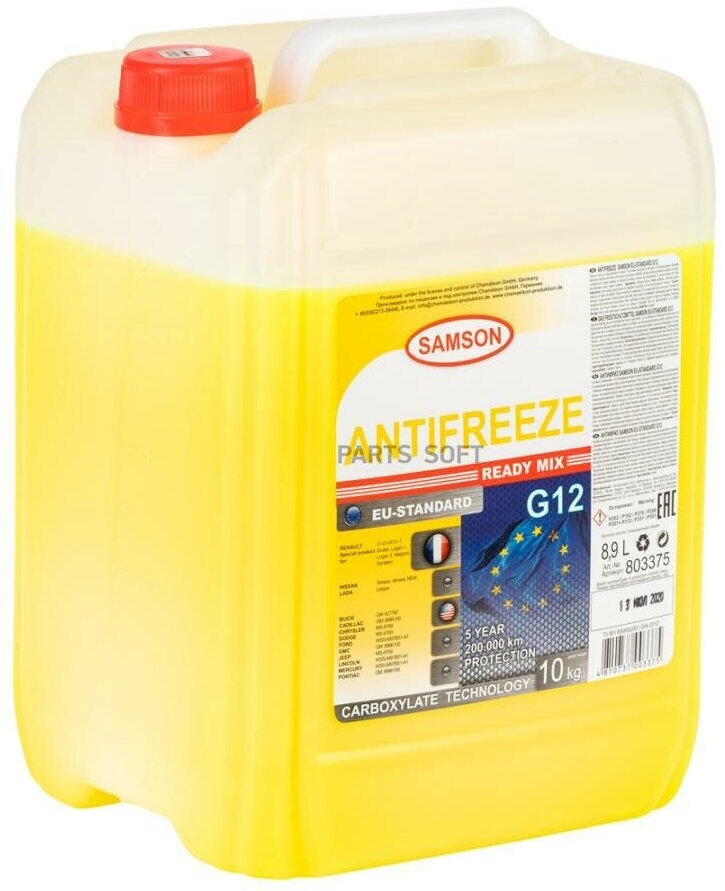 Антифриз, готовый раствор EU-Standard G12 жёлтый 10кг SAMSON 803375 1шт