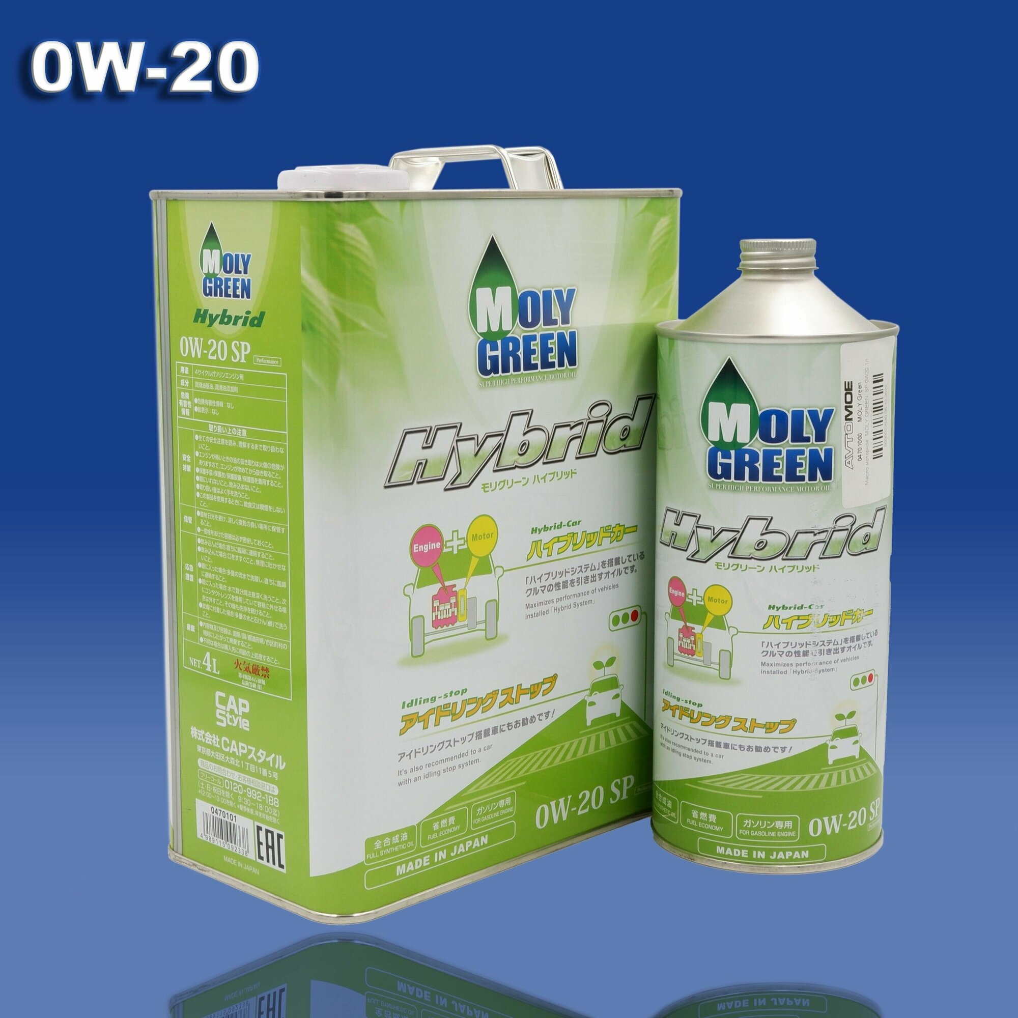 Масло моторное MOLY GREEN SP 0W20 HYBRID 8 литров (Комплект 4+4 литра)