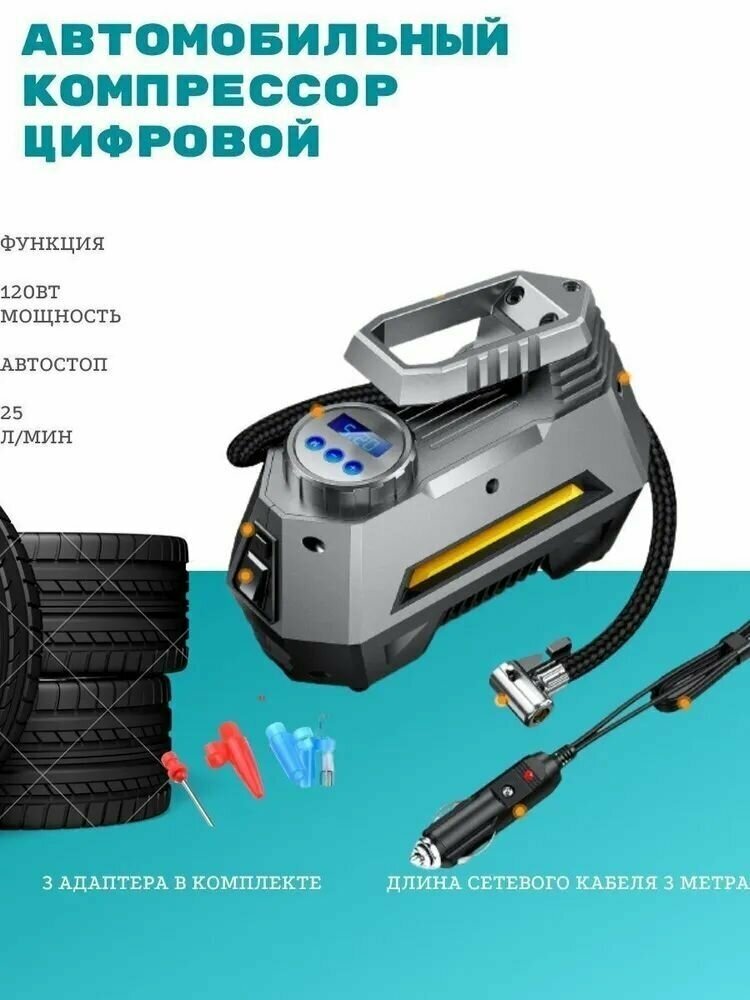 Компрессор автомобильный CityUP двухпоршневой с фонарем, 60л/мин, 300 Ватт, сумка в комплекте + переходник для АКБ