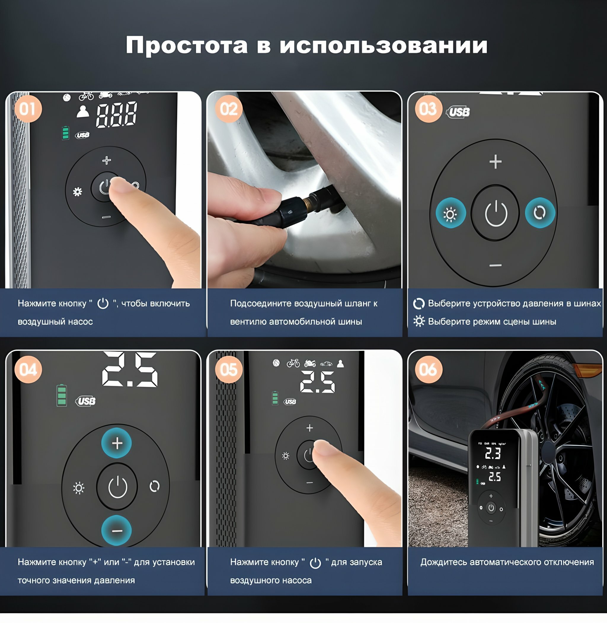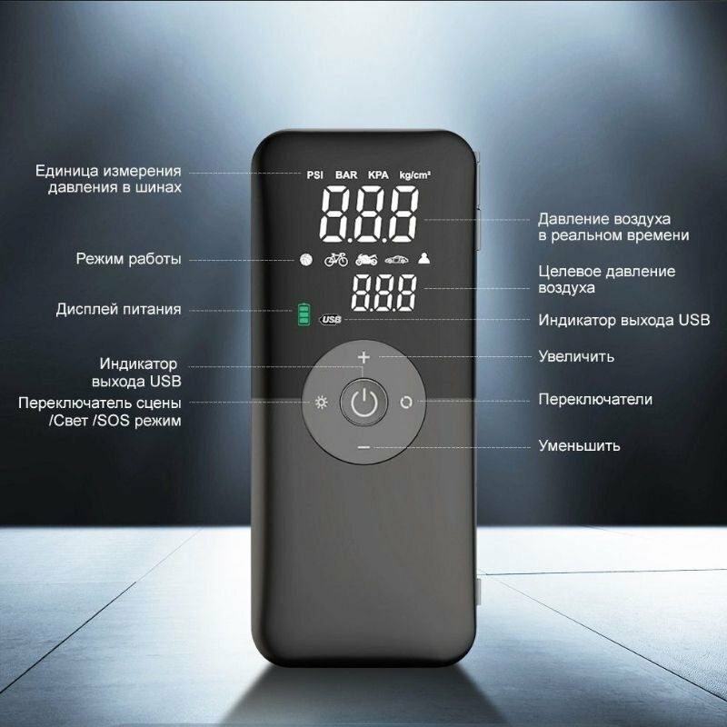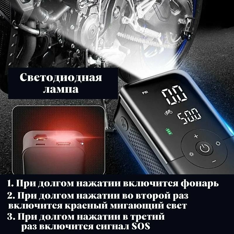 Компрессор автомобильный электрический ANYSMART аккумуляторный 4000 мАч для мотоцикла, велосипеда интересное: