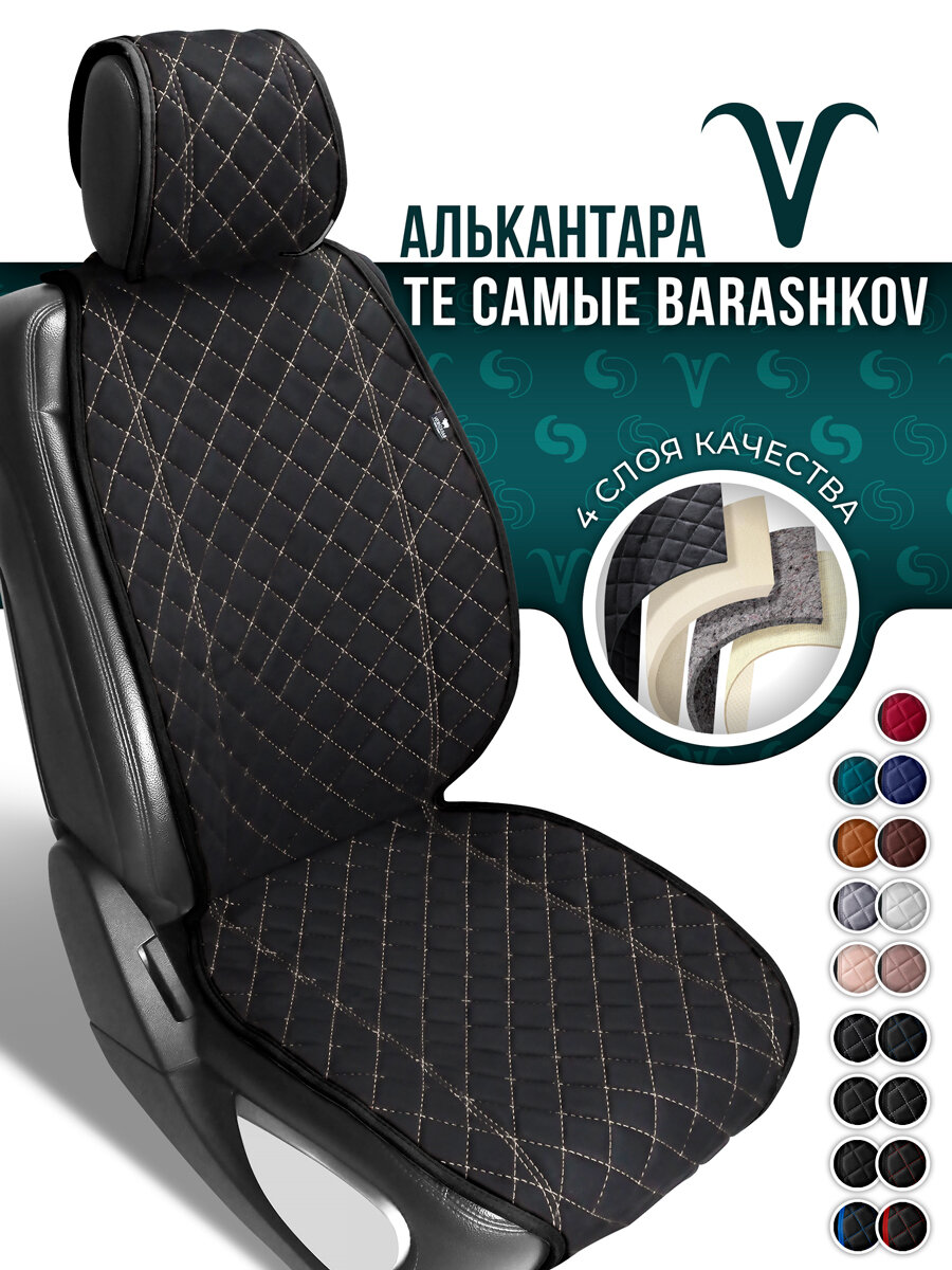Купить BARASHKOV/ Накидка чехол на сиденье автомобиля из алькантары на переднее сиденье авто.1шт. Модель L "CLASSIC". Черный, кремовый, черный