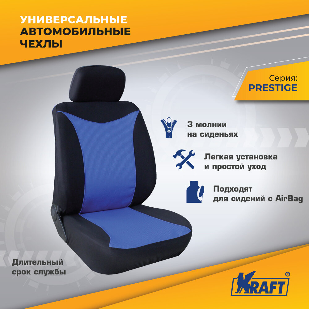 Чехлы Универсальные "Prestige", Полиэстер/Жаккард, Srs Airbag, 9 Предметов, Поролон 2Мм, 2 Молнии Черные/Синие Kraft арт. KT ...