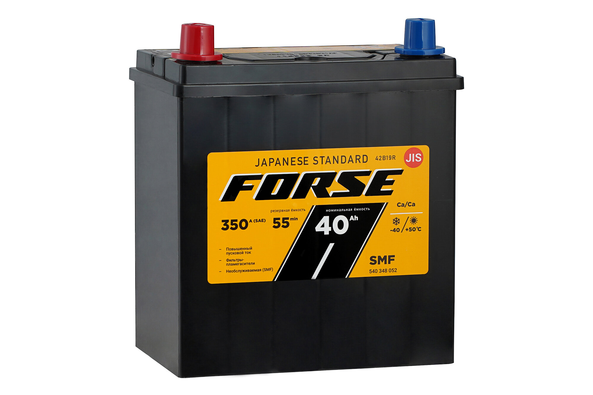 Автомобильный аккумулятор премиум класса FORSE Asia 6CT- 40 VL B19 прямая полярность