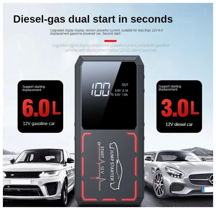 Пусковое устройство бустер EAFC 12000mAh 600A. Портативное пуско-зарядное устройство для автомобиля.