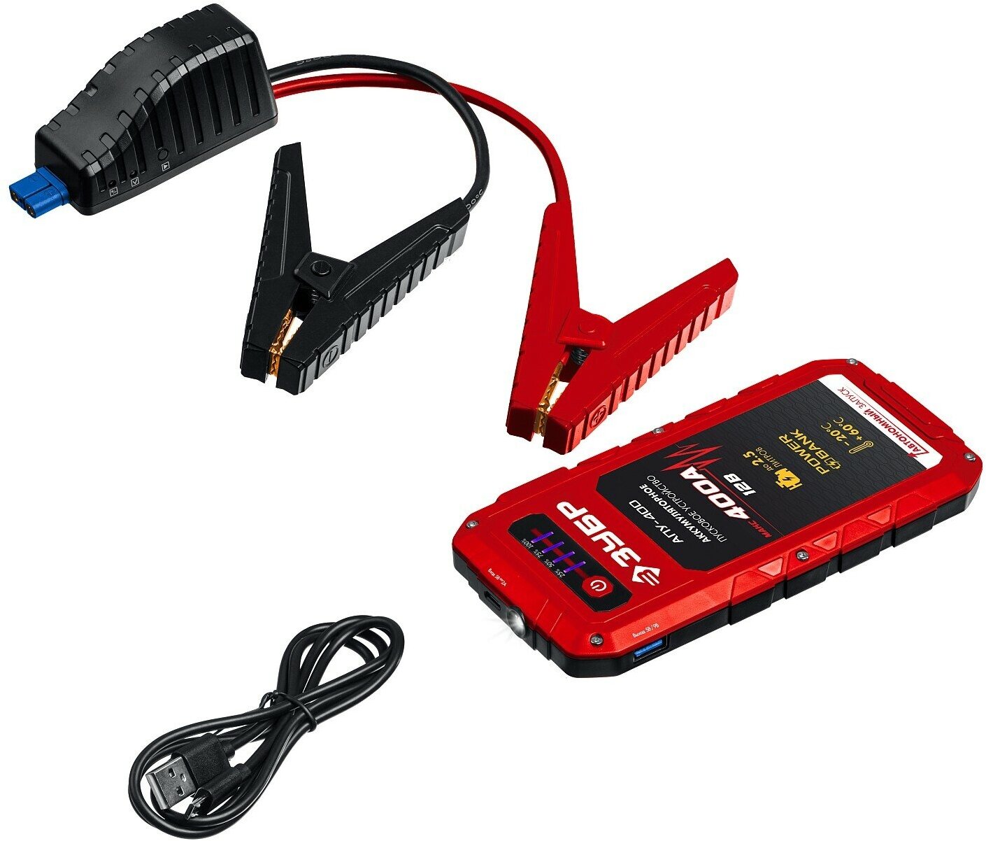 ЗУБР АПУ-400 аккумуляторное пусковое устройство: 12В, макс. 400А.