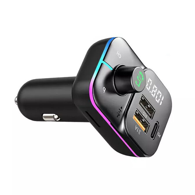 FM трансмиттер Bluetooth с RGB подсветкой / Модулятор автомобильный / Адаптер быстрой зарядки с 3 USB 3.1 A TDS-13