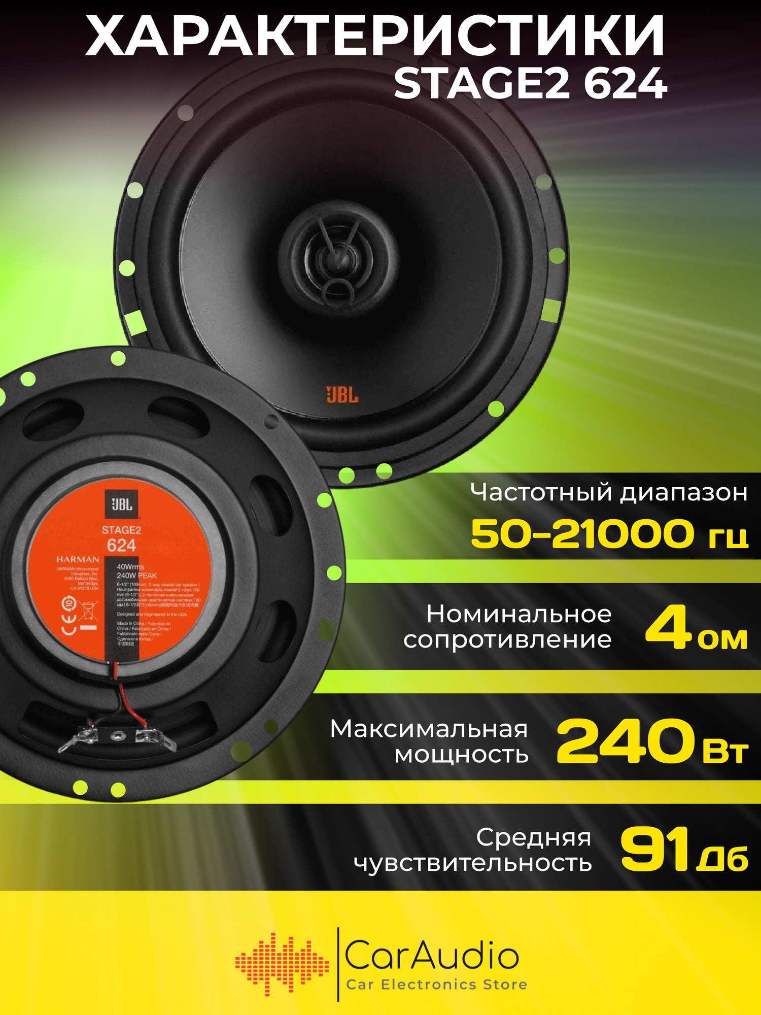 Автомобильная двухполосная коаксиальная акустика JBL STAGE2 624 интересное: