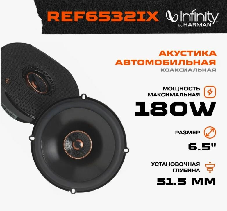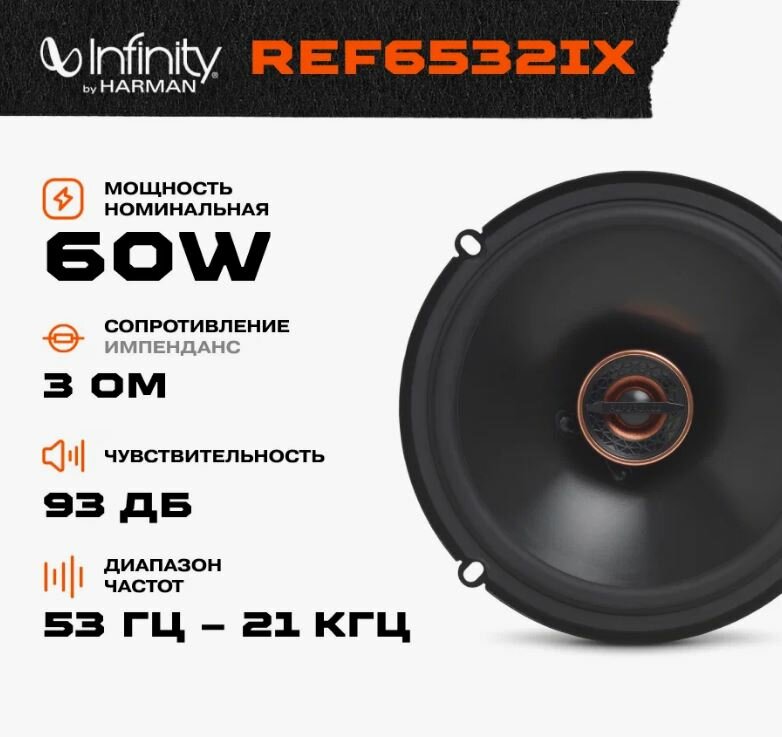 Ниже Вы можете прочитать отзывы на Колонки автомобильные Infinity Reference REF6532ix 180Вт 93дБ 3Ом 16см (6.5дюйм) (ком.:2кол.) коаксиальные двухполосные, ознакомится с подробными характеристиками, посмотреть интересные обзоры и фотографии на Колонки автомобильные Infinity Reference REF6532ix 180Вт 93дБ 3Ом 16см (6.5дюйм) (ком.:2кол.) коаксиальные двухполосные.