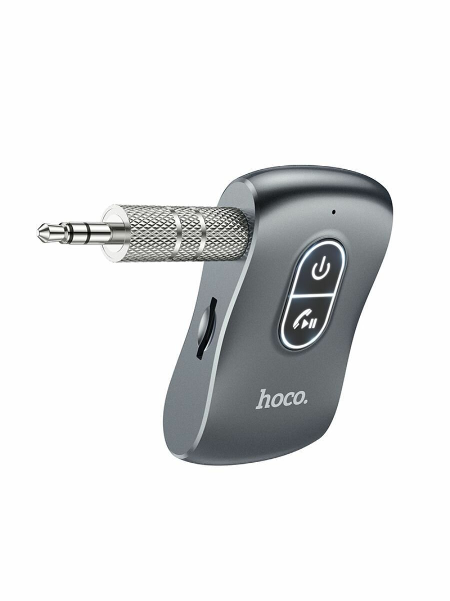 Автомобильный Bluetooth-приемник адаптер HOCO E73 Tour, 200 мАч, AUX Jack 3.5мм/Bluetooth, серый металлик