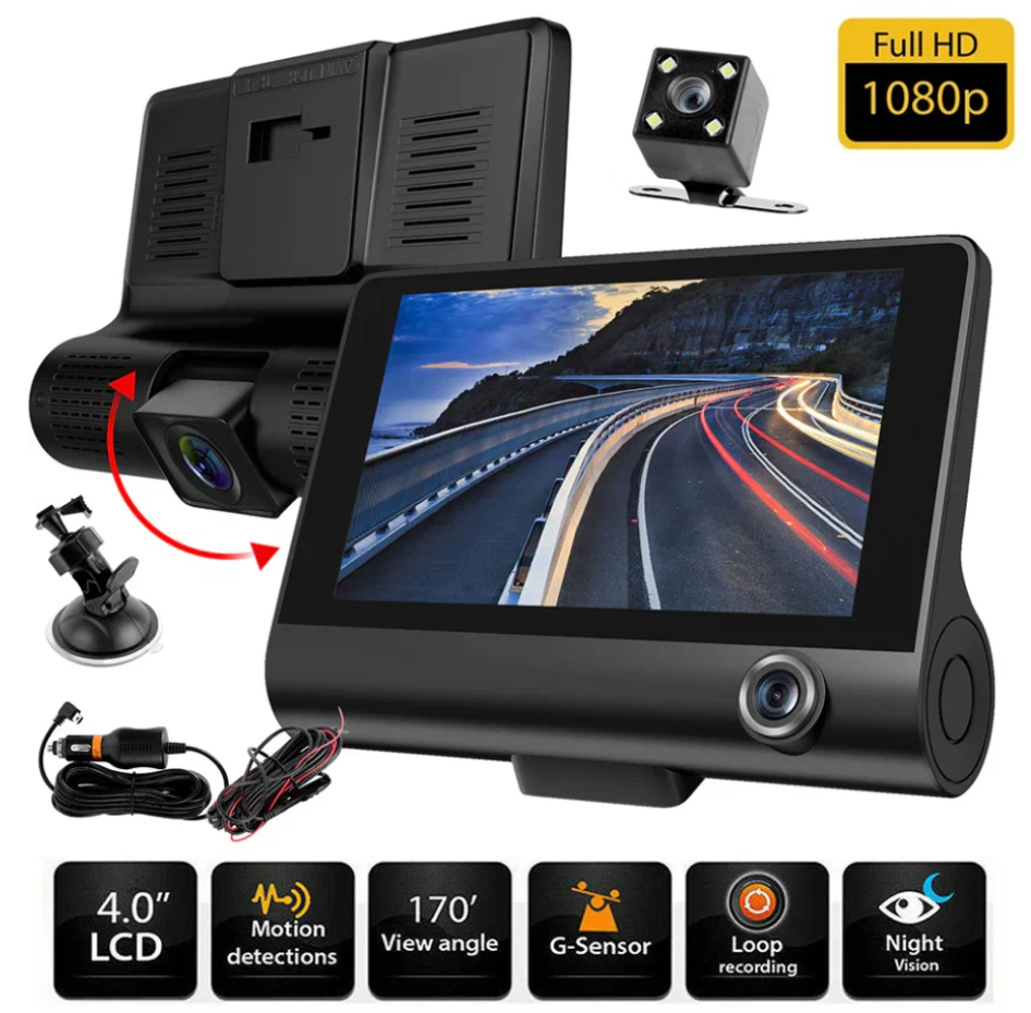 Купить Автомобильный видеорегистратор c 3 камерами, включая салон / Запись HD-видео / Процессор Ambarella (70CPU) / G-Sensor и парковка