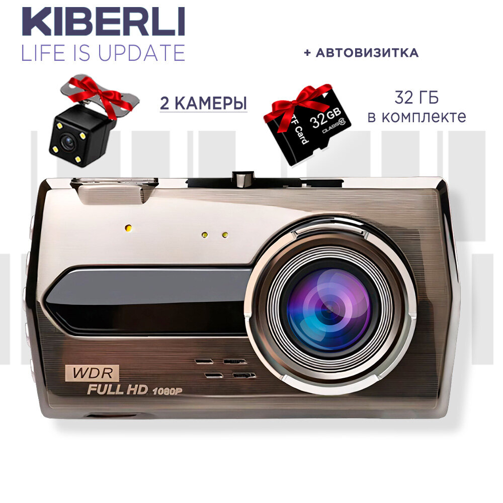Видеорегистратор для автомобиля KIBERLI LI 10 с камерой заднего вида датчик движения G-сенсор TF-карты на 32 Гб автовизитка
