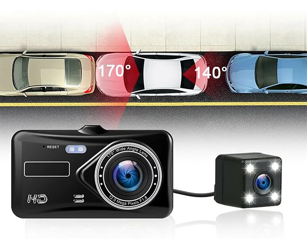Автомобильный видеорегистратор Dual Lens с двумя камерами / Full HD 1080P / Сенсорный LCD дисплей / G-Sensor / HDR / Камера заднего вида для парковки интересное: