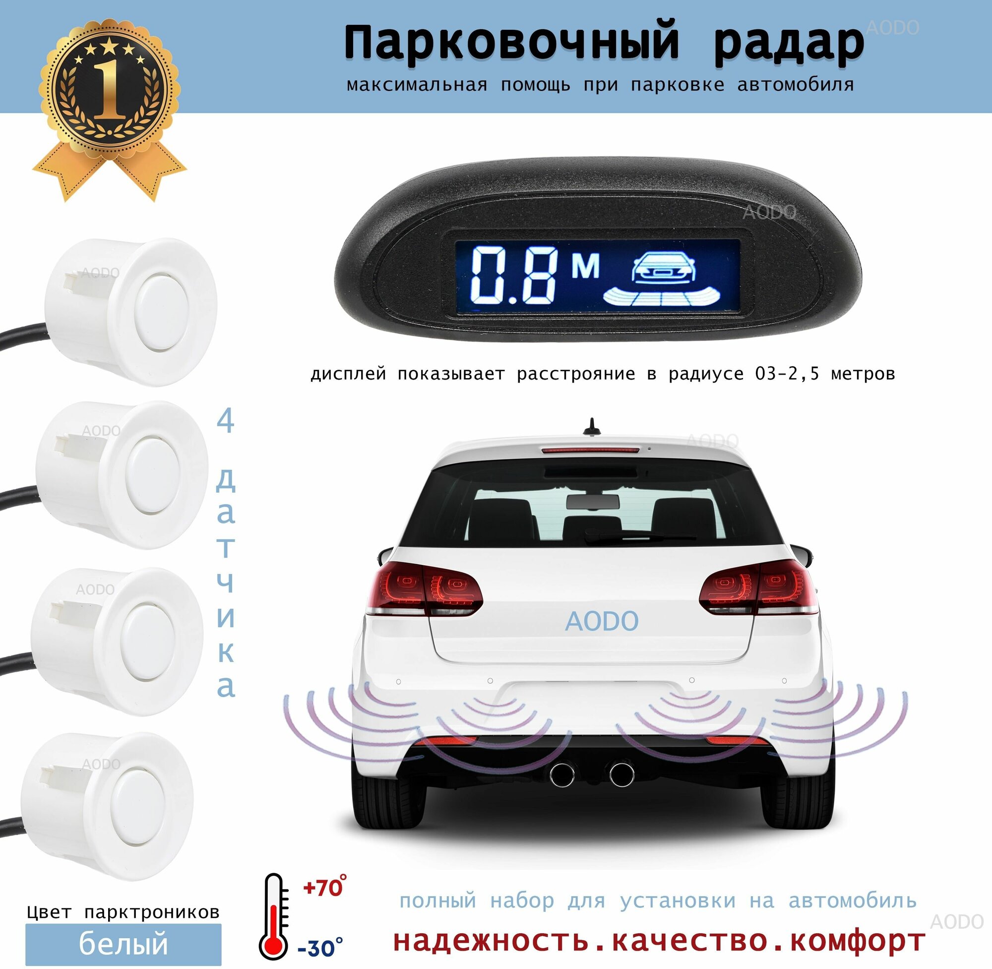 Парктроник Для Авто 4 Датчика / Парковочный Радар AODO Ak-910 Белый интересное:
