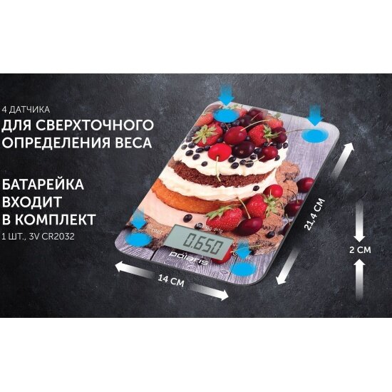 | Отзыв: | Выбирала весы до 1000 рублей, увидев данные весы влюбилась в яркую, сочную и аппетитную картинку на весах. этот маняший вкусный ягодный тортик...