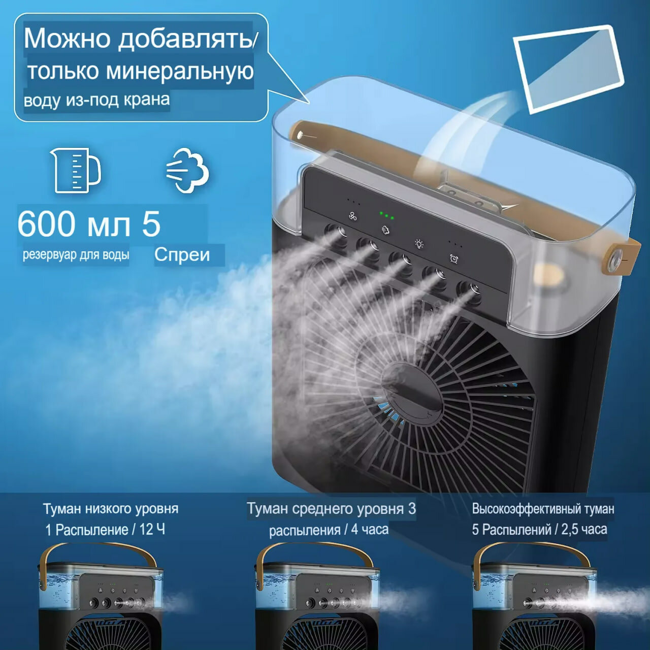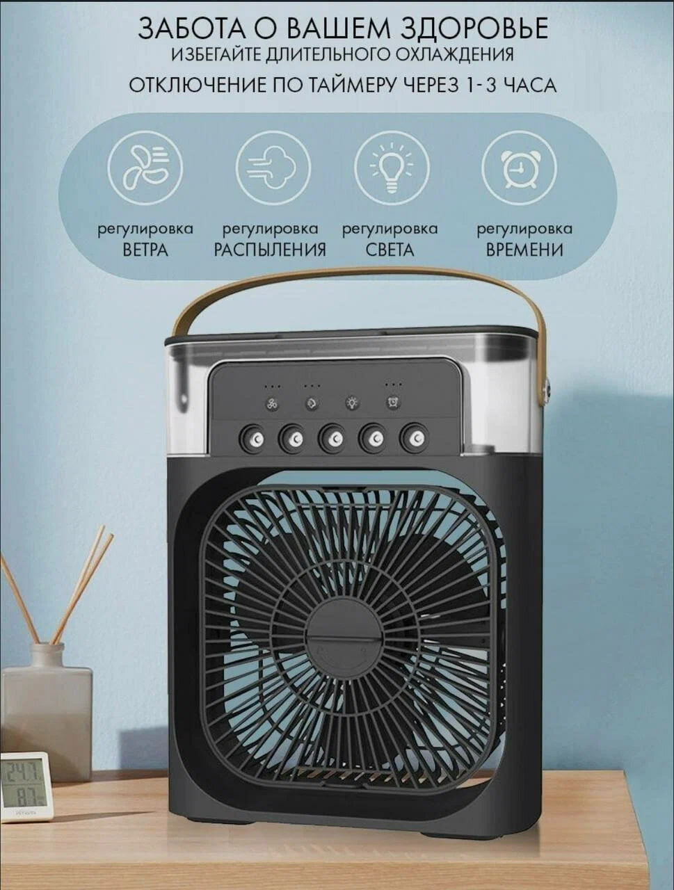 Настольный вентилятор\увлажнитель\мини кондиционер MINI COOLING FAN, черный интересное: