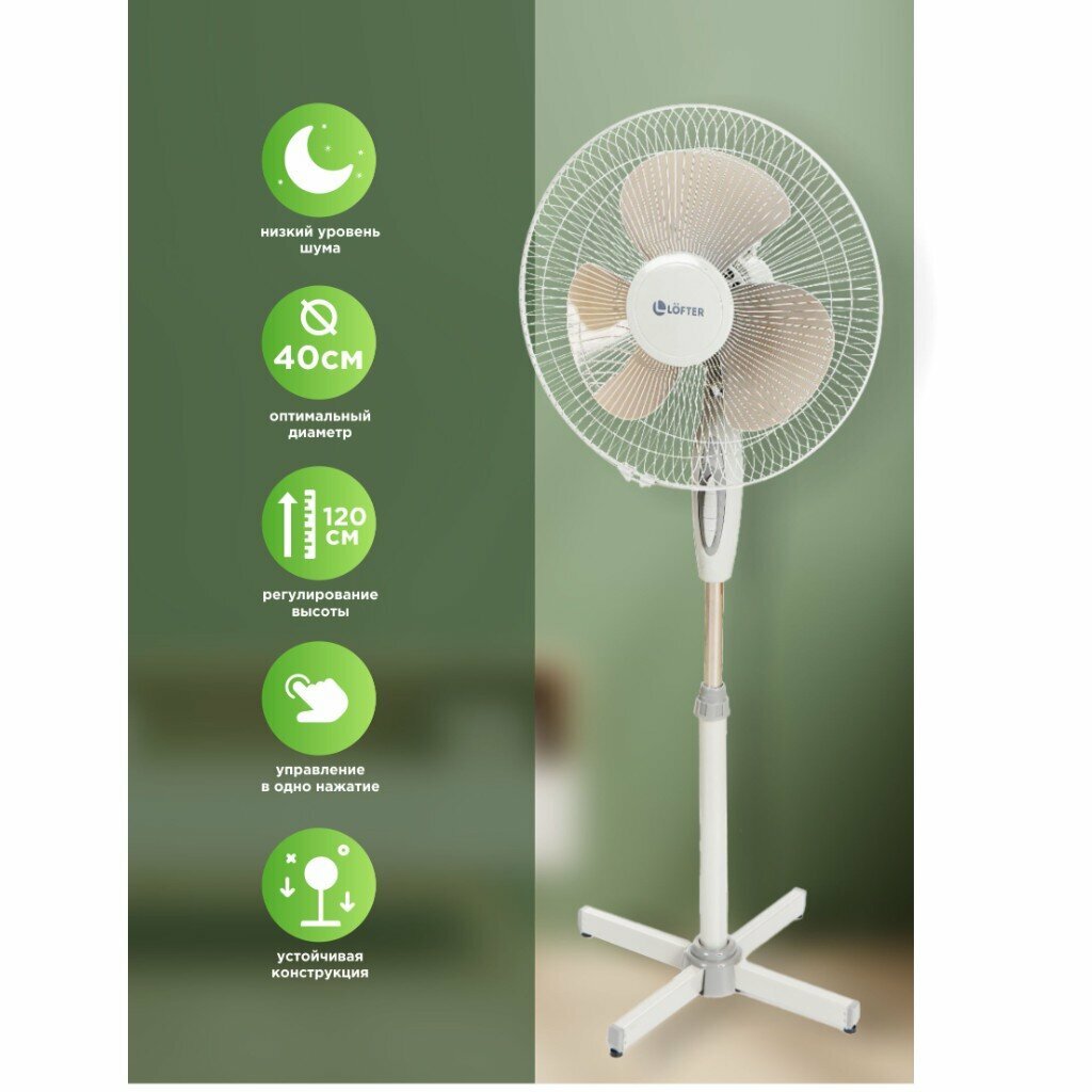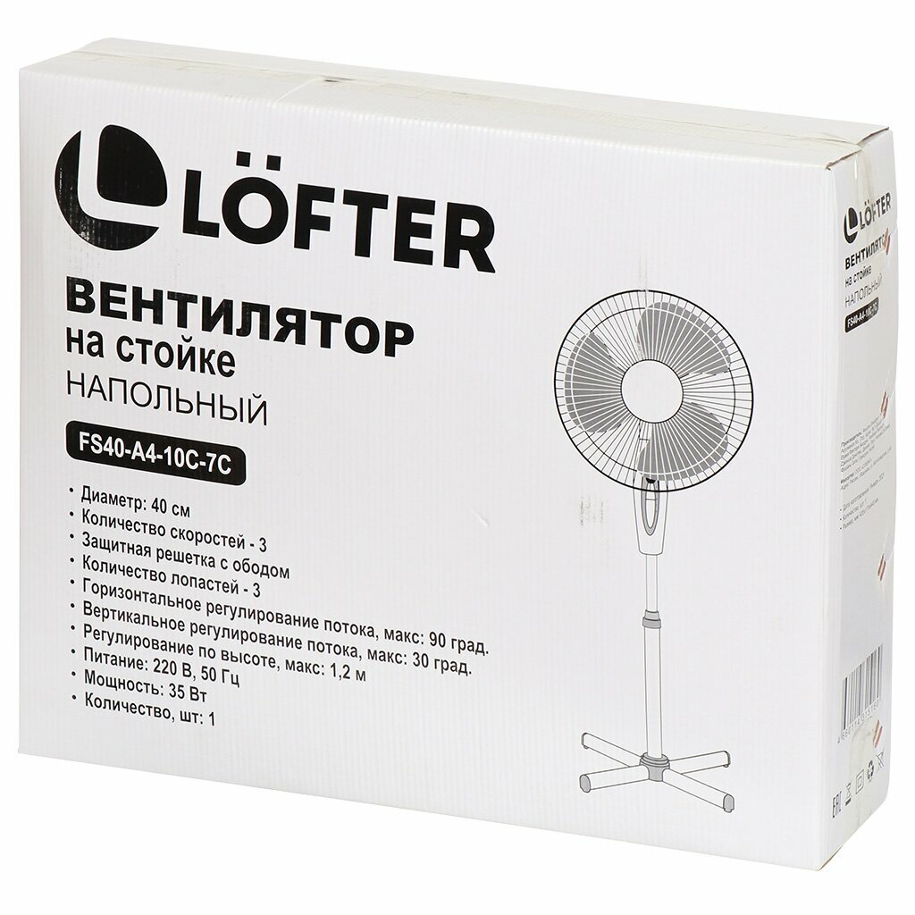 Купить Вентилятор напольный, Lofter, FS40-A4-10C-7C, 35 Вт, 3 скорости, поворотный, серый, FS40-A4-10C-7C