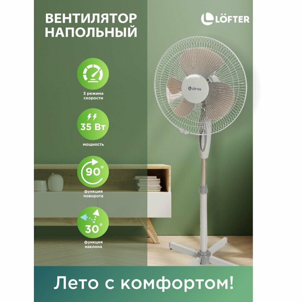 Вентилятор напольный, Lofter, FS40-A4-10C-7C, 35 Вт, 3 скорости, поворотный, серый, FS40-A4-10C-7C интересное: